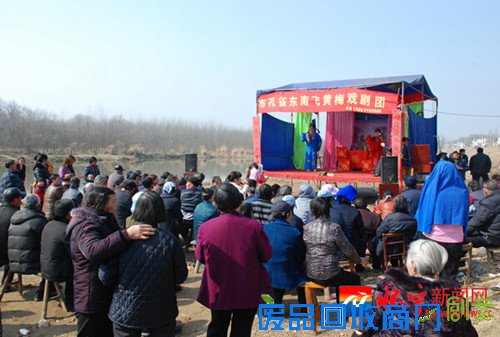 黄梅戏民间班社简陋的舞台挡不住观众看戏的热情