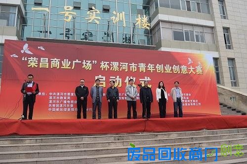 近日,漯河市青年创业创意大赛启动仪式在漯河职业技术学院广场举行。部分参赛选手、青商会会员、青年创业者等1000多名青年参加。