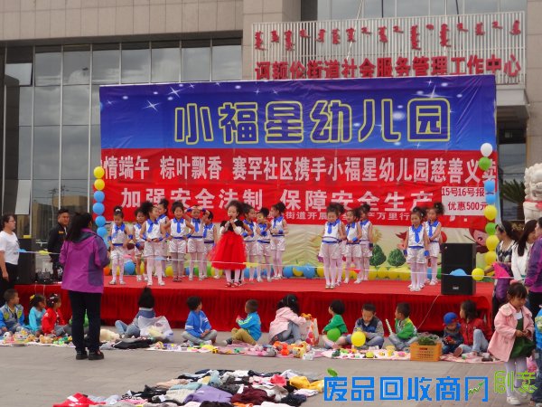6月18日,东胜区诃额伦街道赛罕社区联合爱心单位,开展小小志愿者卖萌献爱情暖端午志愿活动。赛罕社区联合大爱鄂尔多斯公益协会和小福星幼儿园开展小小志愿者文娱义演活动,在街道门前开展爱心义卖义捐活动,现场义卖物品包括八成新图书、生活用品、儿童玩具、志愿者亲手制作的民族手工饰品、粽子和凉糕、爱心衬衫等,义卖义捐收入的1512元作为扶贫济困公益金全部捐给需要救助的人。