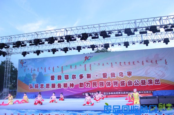 6月13日,乌审旗志愿者协会和铭善志愿者协会乌审旗分会在乌审广场联合举办了“爱我鄂尔多斯·爱我乌审”弘扬志愿服务精神,助力民族体育盛会为主题的大型公益演出,以自己独有的方式庆祝佳节、迎接盛会。来自社会各界的200余名志愿者参加活动。晚会节目丰富多彩,既有原生态艺术的无琢之美,又有现代舞的奔放之力,既有二人台小戏的诙谐之趣,又有男女声独唱的天籁之音,既有专业演员的倾情奉献,又有乌审萌宝的可爱出演,多样的表演方式、精湛的演出技艺给现场观众们带来了一场视觉盛宴。晚会在志愿者慷慨激昂的倡议中结束。(郝晓丽)