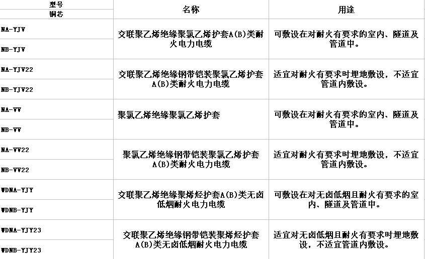 一、用途代码-不标为电力电缆,K为控制缆,P为信号缆;