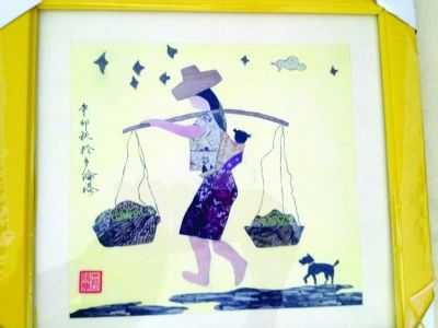 挑着扁担背着孩子晚归的妇女;傍晚在田埂边聊天的农民;穿着漂亮和服的日本娃娃……在贾筱庆家里,记者看到一幅幅非常漂亮的拼贴作品,而令人难以相信的是,这些画作的原材料都是废旧的晚报。得知记者的工作单位,贾筱庆感觉相当亲切,他告诉记者,家中订阅《扬子晚报》有十年了,算得上是正宗的“扬粉”。