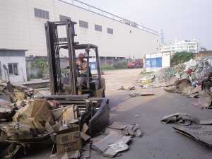 昨天下午4点左右,记者来到位于台州经济开发区界牌菜场附近的废纸打包厂时,四五个工人正忙着整理地上堆积如山的废纸,仓库里堆着的是已经整理好的废纸盒。记者目测了一下,有四五米高。此外,位于废纸打包厂隔壁的废铁收购站也是如此。