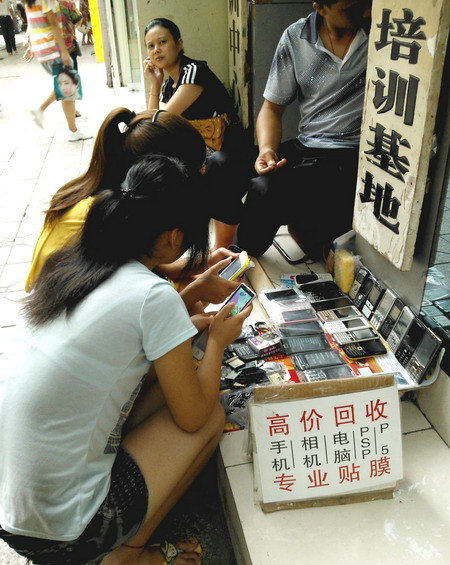 而对于记者手里的几个旧手机,则极不情愿地表示:3个手机总共给10元钱。记者询问价格为何这么便宜?摊主表示:“现在到处都是高端手机了,这手机是山寨货,给10块钱已经是很高的价格了!”说着,拿出一部新收购三星I9003手机告诉记者:“这款手机是以1800元收购的。你要是有这样的手机,我也收。”