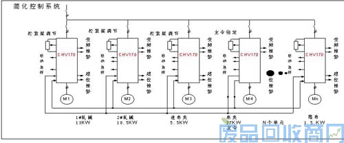 例4、广东普宁达美印染厂原荷兰STORK生产的园网印花机,全机分五个传动单元,12套色,整机的工艺流程:进布——印花——烘房——烘筒(另加)---落布。原机是直流调速控制,(进布+印花+烘筒+落布)由调压器调压再经过二极管整流供电,烘房由独立直流电流供电,此电源经常出现故障,和主机印花不同步等现象,而且导布速的同步性能较差,造成对花不正确,影响产品品质。使用英威腾CHV170变频器改造后,同步性能极佳,解决了低速不同步、对花难等生产困难,节能效果明显,故障率减少了30%,维修保养的工作量也大大减少。充分进步了生产效率和经济效益。