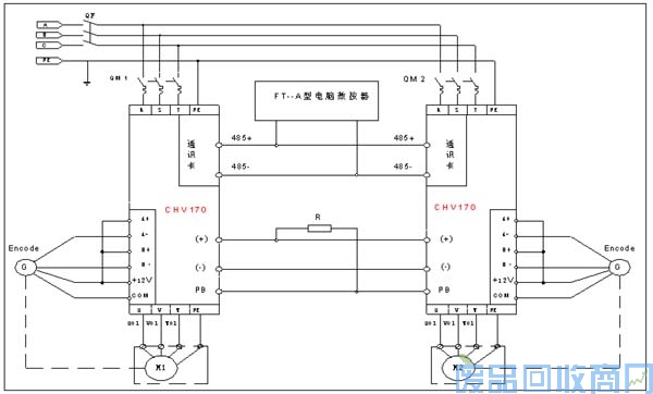 卷染机是一个典型的中心卷曲控制系统,系统使用英威腾CHV170变频器和FT-A型电脑数控器,配置通讯卡、PG测速反馈卡。