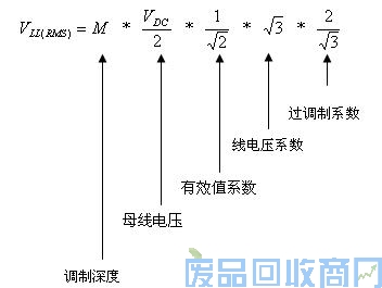 在零序电压注进调制技术中,逆变桥输出的线电压有效值由等式1确定: