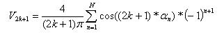 在实际应用中,通过确定N次的谐波频率就可以计算出在0° 到90° 之间的开关角度,因此考虑到系统的对称性,整个PWM脉冲序列就能被确定。在输出电压中只包含奇数次的谐波,并且由下面的公式决定: