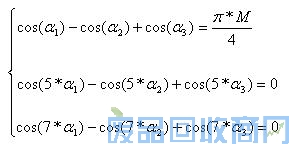 预计算PWM调制方式3中一个开关角度用于决定基波的幅值,另外两个开关角度用于消除5次和7次电压谐波,开关角度由以下等式方程组计算而得: