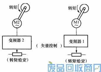 诸如造纸、印刷印染、包装、电线电缆、光纤电缆、纺织、皮革、金属箔加工、纤维、橡胶、冶金等行业由于工艺都要进行精确的转矩控制,所以生产线的电控系统很多都是直流控制,从而保持转矩的恒定,以获得良好的控制性能,进步产品的质量。但由于结构上的原因,直流电动机存在以下缺点:(1)需要定期更换电刷和换向器,维护保养困难,寿命较短;(2)结构复杂,难以制造出大容量、高转速和高电压的直流电动机;(3)投资本钱高,耗电量大。随着高性能矢量变频器的出现, 其控制性能已能和直流控制性能相媲美。由于交流电动机的结构、性价比、使用、维护等很多方面都优于直流电动机,矢量变频控制正在这些行业被越来越广泛的应用。