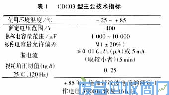 江西信达电子公司研制成功的CDC03型螺钉结构大型铝电解电容器就具备上述特点,该产品的主要性能指标详见表1和表2所列,外形图如图2所示,外形尺寸如表3所列。