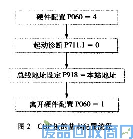 装机装柜型变频器有6个槽可用来安装可选板,cBP通信板可以安装在任何一个槽位。通信板安装完毕后就可以起动进行配置,首先要确定站地址,这是通过变频器参数设置完成的。其过程如图2所示。CBP通信板有3个指示灯显示通信状态。这3个指示灯分别是:红色为运行灯;黄色为与变频器进行数据交换灯;绿色为与PROFIBUS DP进行数据传输灯。只有当这3个指示灯同时闪烁时,系统通信才正常。