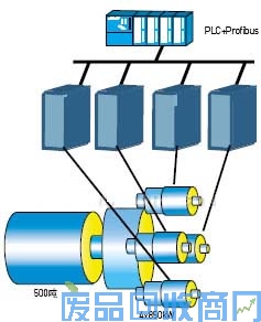 下图所示是Vacon交流驱动产品在钻井平台上实现4台电机控制一台绞车轴的电驱系统构成描述。由于海浪的波动,钻井平台的高度会发生变化,而这套变频调速系统可以快速的补偿钻井平台的升降,以减轻其对钻井过程的影响。