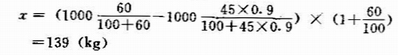 解: 例中所用废旧塑料仅有农用聚氯乙烯薄膜一种,故a=A1。再生鞋底配方中要求增塑剂的质量比b为60phr,我国各地生产的聚氯乙烯薄膜配方中增塑剂的质量比C一般为45phr。根据实践经验,在废旧聚氯乙烯农用薄膜中的损耗系数K一般为0.8~0.95,在此取K值为0.9。所需添加的增塑剂量x可按上述公式进行计算,结果为: