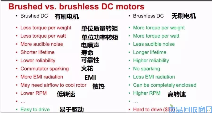 TI的一个介绍视频关于有刷电机与无刷电机的对比,如下图所示,很完整。