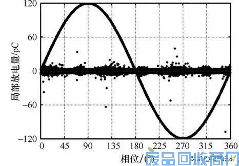 为了研究局部放电类型与局部放电特征信息之间的关系,众多学者采用预设不同种放电类型,如尖端放电、沿面放电等,寻找出局部放电类型与特征信息的对应关系,从而帮助识别发现变压器缺陷类型。图5为利用局部放电相位与对应放电量关系得到的谱图(即PRPD谱图)。利用PRPD谱图的形状特征可识别局部放电类型。