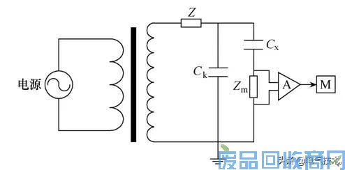 局部放电的测量以脉冲电流法应用最为广泛。图4为典型的离线式脉冲电流法的测试电路结构图。在图4中,Cx为试品,Ck为耦合电容,Zm为检测阻抗,Z为低通滤波器。利用图4测量系统可得到局部放电的视在放电量、放电相位、放电频次等特征信息。对这些特征信息的综合分析,可以帮助相关技术人员判断配电变压器的绝缘状态。
