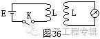 测单相变压器时,如图36所示,在初级线圈一侧拉入一个1.5伏的干电池,然后在次级线圈拉入一直流毫伏表。当合上开关K的一瞬间,表针朝正方向摆动(或拉开开关时表针向负方向摆),说明接电池正极一端是同极性,或叫同名端。测试三相变压器的极性和级别,多采用直流法进行。测试方法为:在初级线圈侧接上干电池和开关K,先在A端接电池正极,B端接电池负极,再在次级线圈a、b、c之间拉入三个毫伏表,