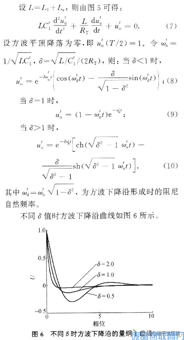 由图6可知方波下降沿仅与δ有关,且δ越大方波下降沿畸变越小。