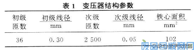 综合考虑系统带宽、功耗及变压器体积限制,方波变压器的适宜工作频率为1.5~4.O kHz;在铁心选材方面,数据表明,在铁氧体、玻莫合金、非晶和微晶合金等铁磁材料中,微晶合金具有磁导率高、饱和磁通密度大、电阻率大和比损耗小的优点,是制作方波变压器铁心的理想材料;为简化制作工艺,变压器采用了C型铁心和同轴圆筒式绕组结构,并采用双线并绕和分层分段绕制工艺。经反复计算和多次改进后,变压器的最终结构参数如表l所示。