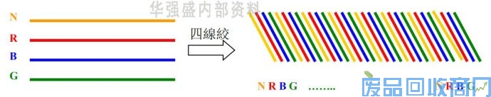 将一次侧与二次侧的线材交错依颜色N、R、B、G排列,然后再绞线, 如下图所示