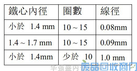 考量製程方便Transformer常用铁心大小与圈数所相对应的建议线径如下
