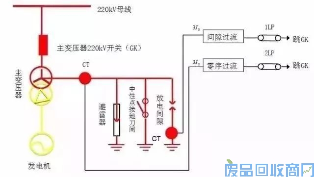 情况2:当系统发生接地故障,中性点接地的变压器跳开后,电网零序电压升高或谐振过电压等都会危及中性点不接地的变压器中性点绝缘。因此,中性点不接地的变压器应装设零序电压保护或间隙零序电流保护。