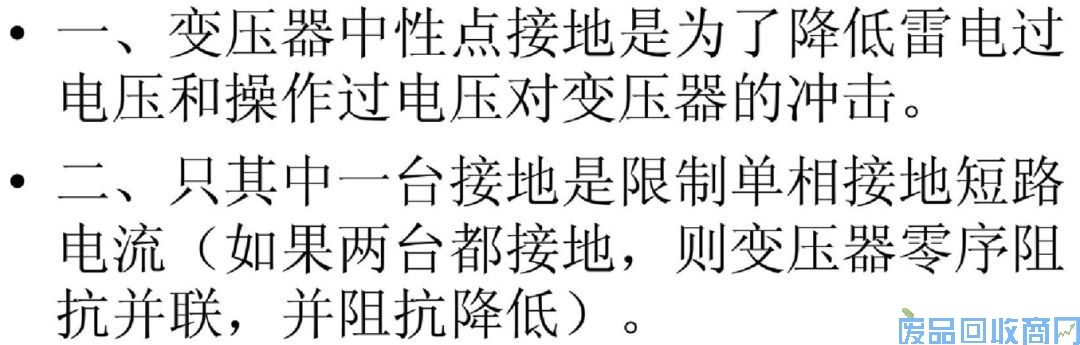 2、变压器中、低压侧有电源时,则变压器中性点必须直接接地,以防止高压侧断路器跳闸,变压器成为中性点绝缘系统;