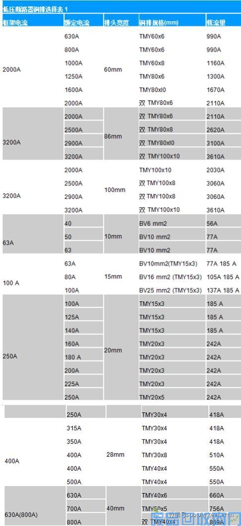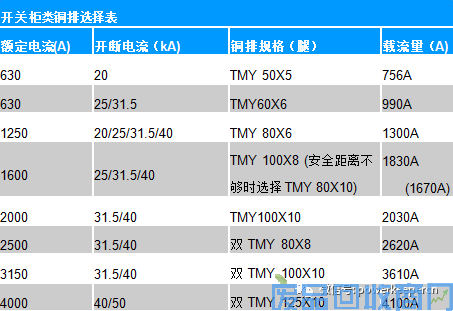 铜排的选择不能只是考虑载流量它还要考虑最大短路电流的大小,也就是考虑选择某规格铜排后,最远方出现短路时短路电流的大小,从而配套相应大小的保护(也就是保险丝或继电保护数值大小)。