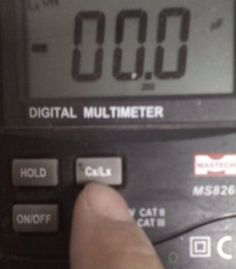 (4)将万用表测量按钮按下,一般标有“Cx/Lx”即测量电容按钮,按下后显示屏有提示。