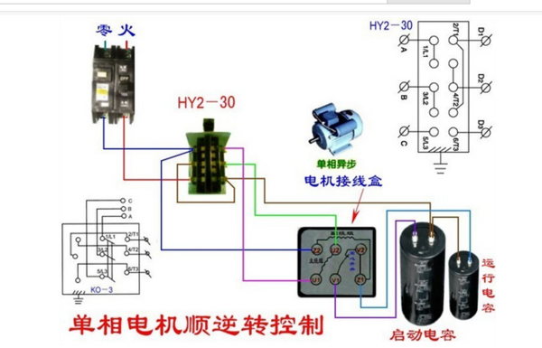 二相电机接电源线如图: