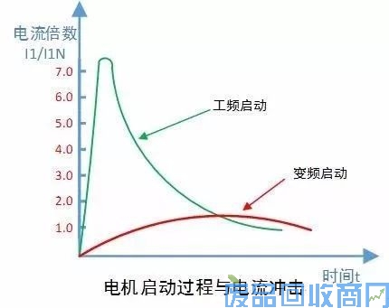 用市电直接启动电机,其启动电电流为电机额定电流的5-7倍。这种电机直启情况下,会导致电网电压下降,影响其他用电设备的正常运行。
