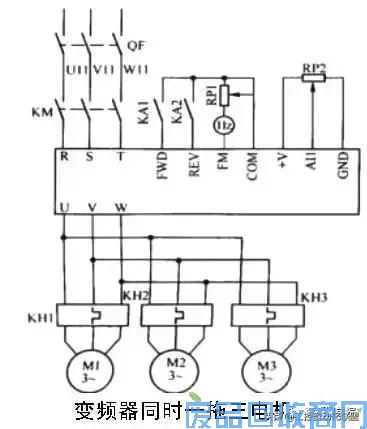 变频器一拖几只能工作于V/F控制方式(相对于矢量控制方式),并且选择合适的V/F曲线。变频器的额定工作电流应大于所有电机额定电流的总和的1.2倍以上。