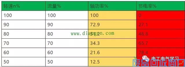当所需风量、流量减少时,利用变频器调速的方式来调节风量和流量,可以大幅度地节约电能。附图5为泵类负载节电理论依据。