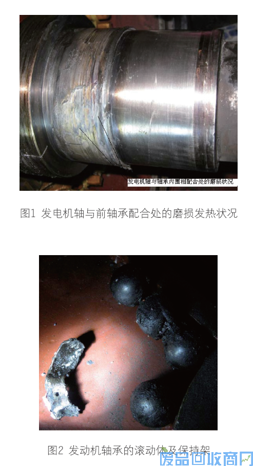 此次事故,机组在处于满负荷发电状态时,发生发电机前轴承损毁、卡死,当轴承故障后,先是轴承保持架破损,轴承内外圈之间的摩擦发热严重,本是过盈配合,因急剧的热膨胀,造成轴承内圈与发电机轴之间的阻力减小,并产生相互滑动,剧烈摩擦产生大量的热量。部分金属材料已经融化,轴承和发电机轴前端的温度迅速上升。