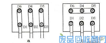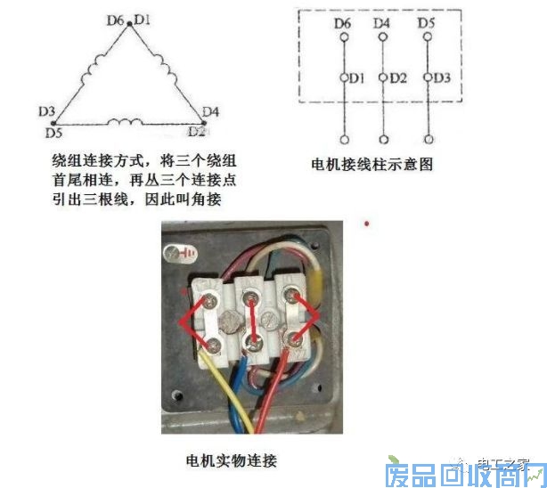 如果是角接就把6柱中上下两个柱连一起,形成三组即可,注意星接和角接的转速和功率是不一样的。