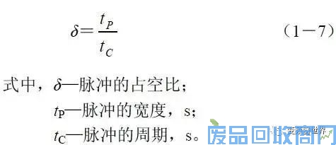 反之,当这些小脉冲之间的间隔较大时,总的周期就增大了,而脉冲的占空比则变小了,平均电压也降低了,如图(b)所示。占空比的定义么,是: