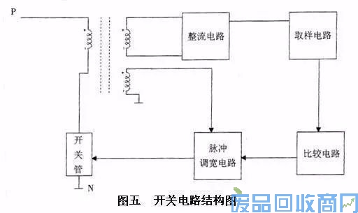 直流高压P端加到高频脉冲变压器初级端,开关调整管串接脉冲变压器另一个初级端后,再接到直流高压N端。开关管周期性地导通、截止,使初级直流电压换成矩形波。由脉冲变压器耦合到次级,再经整流滤波后,获得相应的直流输出电压。它又对输出电压取样比较,去控制脉冲调宽电路,以改变脉冲宽度的方式,使输出电压稳定。