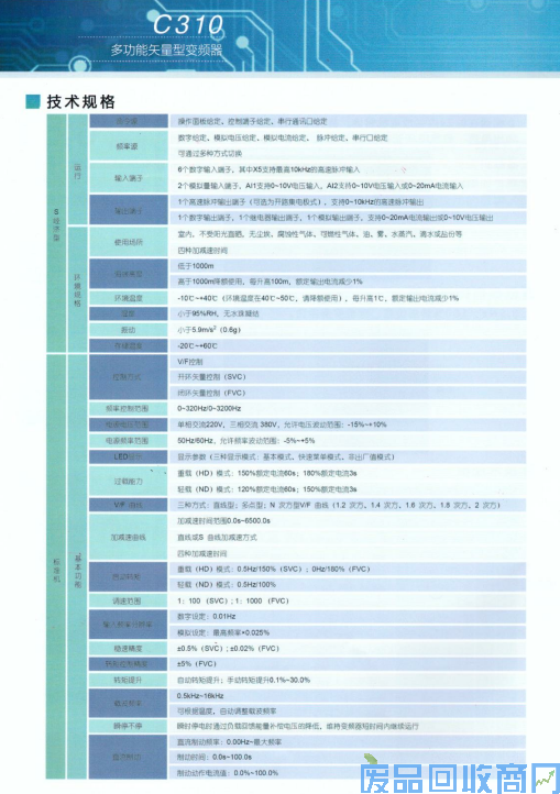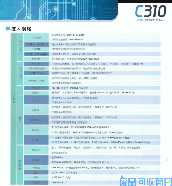 C310系列变频器是由东元集团武汉东讯科技有限公司授权研发生产的高性能矢量型和转矩控制型变频器,该产品采用了与目前国际领先技术同步的无速度传感器矢量控制技术和转矩控制技术,同时还结合中国的应用特点,进一步强化了产品的可靠性和环境的适应性以及客户化和行业化的设计,能够更好地满足多种传动应用的需求.