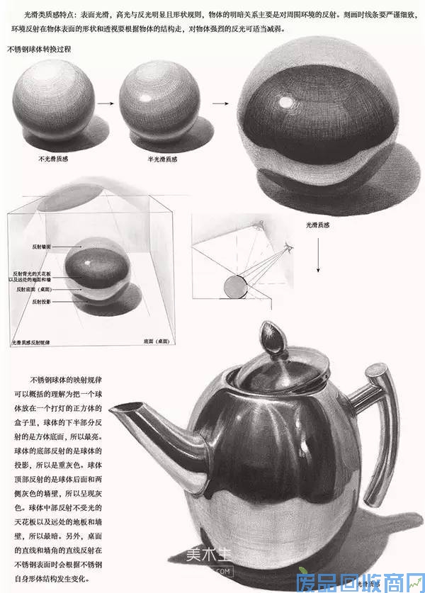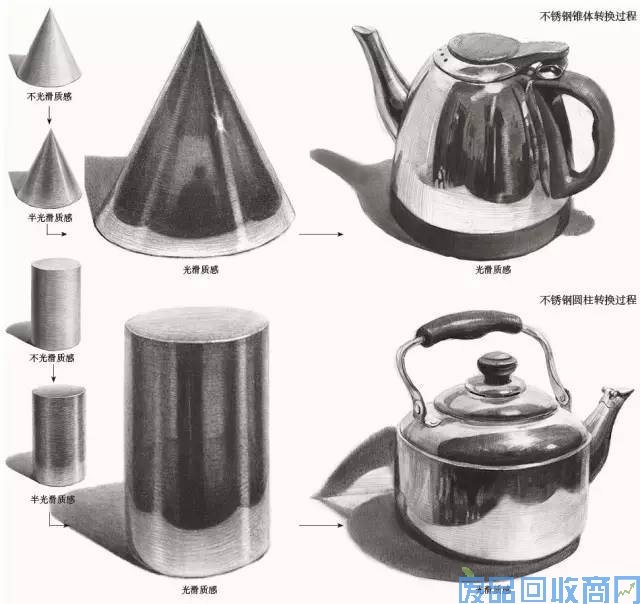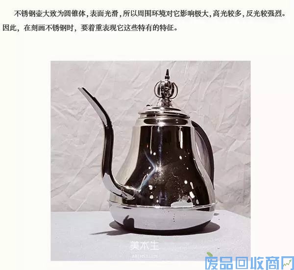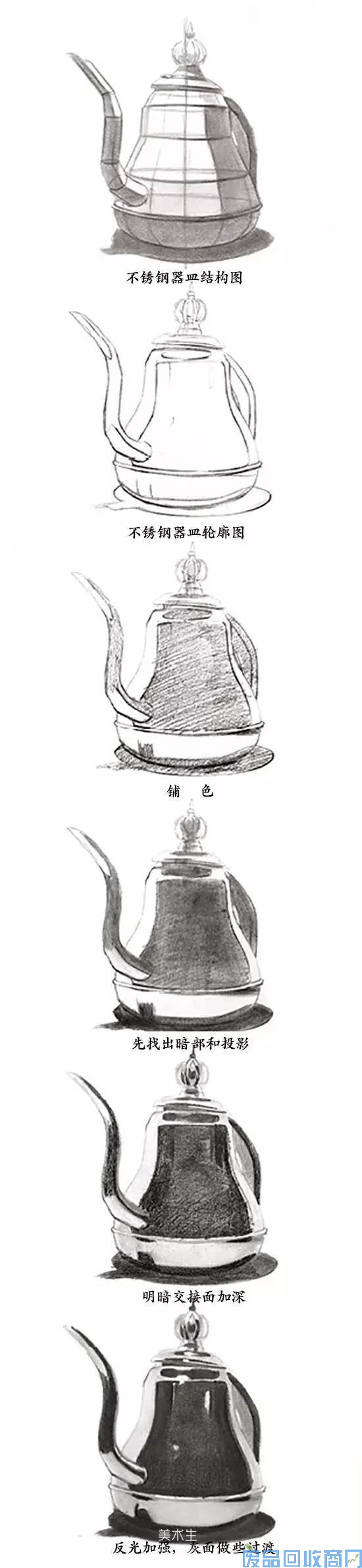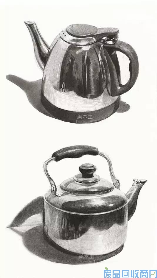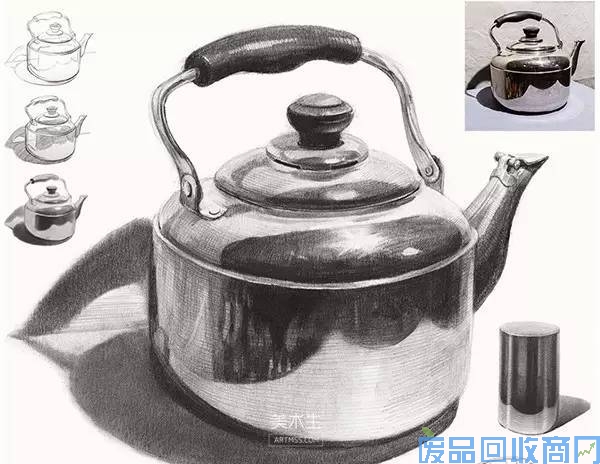 不锈钢器皿对于广大考生来说经常会画到.但要画好它,必须了解它的一些主要特征,就能化难为易。