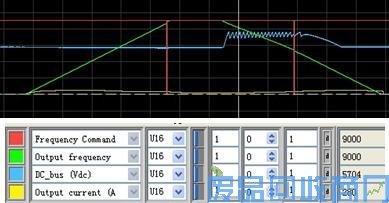 用监控软件查看0~900Hz加速和减速运转时的波形。