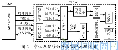 FPGA收到这些数据后,做相应处理。中性点偏移的算法实现原理框图如图3所示。其中,DSP采用TI 公司的TMS320F206,FPGA 采用Altera 公司的EP1C6Q240C8。