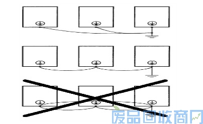 使用两台以上变频器的场合,请勿将接地线形成回路。如图: