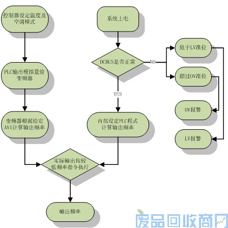 空调系统工作时,首先要检测电压系统的电压,判断是否在正常工作范围之内,正常启动后变频器内部PLC检测的DCBUS(直流母线)值,然后根