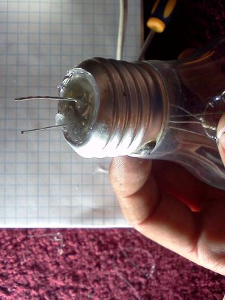 当它在灯泡要记住,你的正极和负极导线伸出静止。