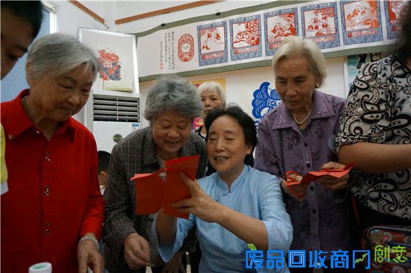 剪纸不但吸引了孩子们的关注,一头白发的老年朋友也对剪纸很感兴趣。互动现场,四位老人围着剪纸名家“讨教”剪纸技艺。