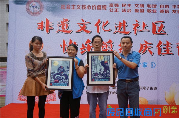 剪纸名家将精心挑选的剪纸作品捐赠给井湾子街道综合文化站。