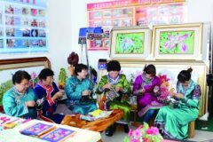 学门手艺好创业---3月6日,蒙古族手工刺绣艺人韦林花(左三)指导转移农牧民妇女进行刺绣创作。近年来,鄂托克前...