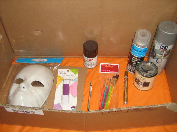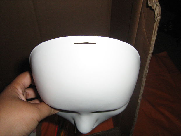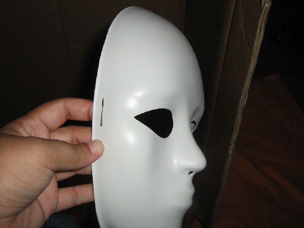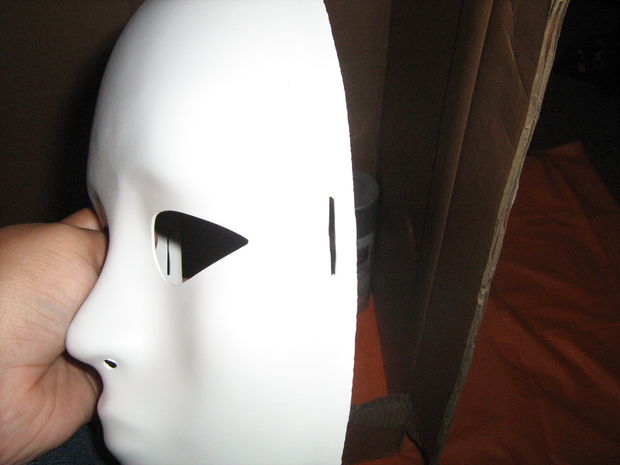 就像我说的,我买了面具,没有任何的方式改动, 因此,为了使我能够附加弹性带我做了三个矩形孔在我的面具。 一个在额头上的冠冕,和每只眼睛旁边。