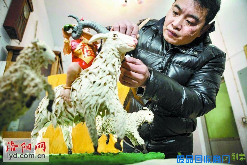 为迎接羊年春节的到来,洛龙区聂湾村的民间艺人王润鑫近日创作了数组以羊为主题的面塑作品,包括山羊、绵羊、藏羚羊、盘羊等,还根据央视羊年春晚宣传片创作了卡通金羊。其中,最引人注目、也最让村民们赞不绝口的,是一件名为《三羊开泰》的面塑作品。